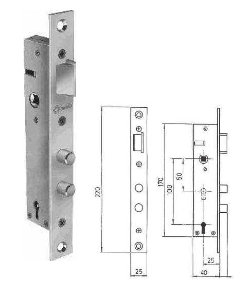 Mortise lock, adequate for light ironwork practicable doors.