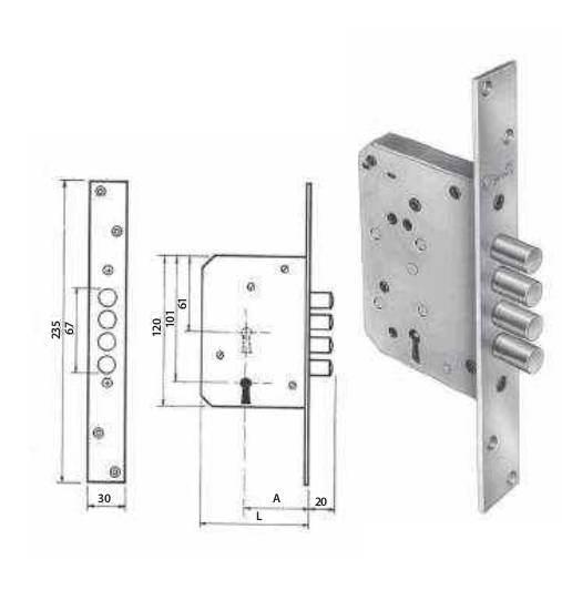 - Pestillo formado por cuatro cilindros de acero cromado.