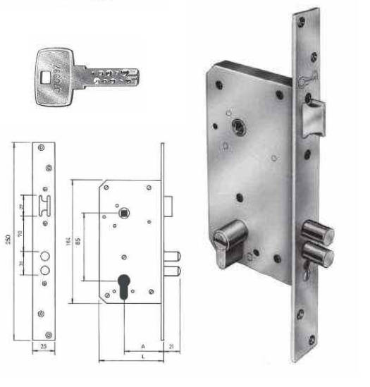 Cerradura para embutir, de Seguridad, adecuada para entradas comunitarias